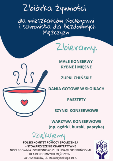 Rozpoczynamy zbiórkę darów dla Noclegowni i Schroniska dla Bezdomnych Mężczyzn przy ul. Makuszyńskiego 19a w Krakowie – jednej z największych placówek tego typu w Polsce.