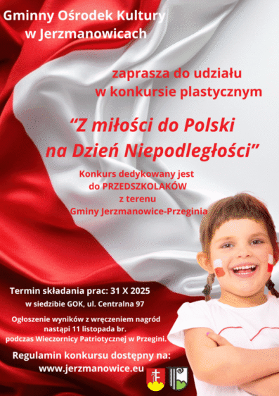 Z okazji zbliżającego się Narodowego Święta Niepodległości zapraszamy uczniów szkoły i przedszkola do wzięcia udziału w konkursach .