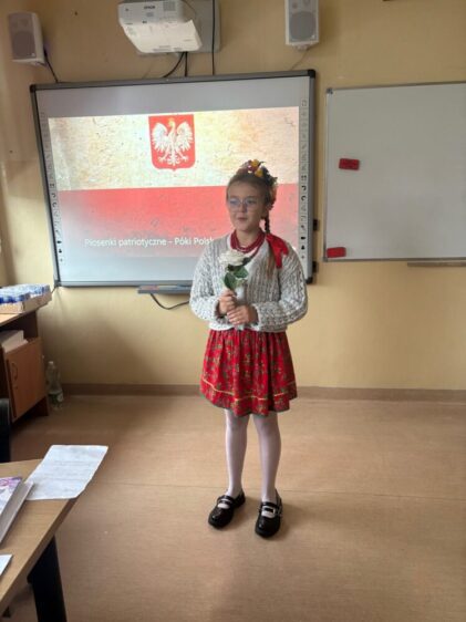 - I miejsce– Stach Lena (klasa 7B) za utwór „Rozkwitały pąki białych róż”