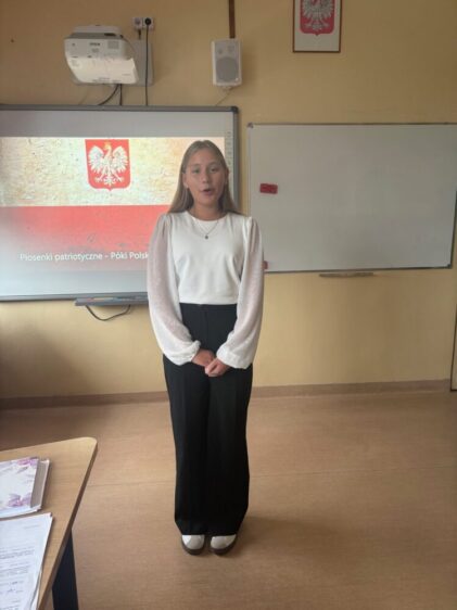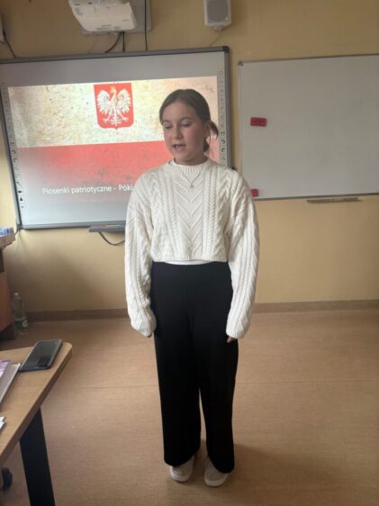 Dnia 17 października 2025 roku w naszej szkole odbył się Szkolny Konkurs Pieśni Patriotycznej zorganizowany jako pierwszy etap Gminnego konkursu pieśni Patriotycznej.