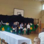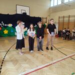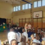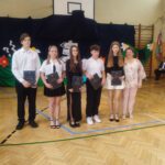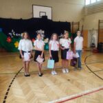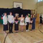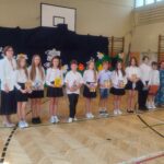 Następnie głos zabrali przedstawiciele klas młodszych, którzy w imieniu całej społeczności uczniowskiej pożegnali starszych kolegów. Najbardziej wzruszającym momentem była część artystyczna. Uczniowie klas siódmych przygotowali program, którym pożegnali tegorocznych absolwentów. Młodsi uczniowie wręczyli ósmoklasistom symboliczne upominki i własnoręcznie wykonane pamiątki.