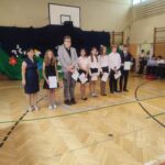 Uroczystość rozpoczęła się od wręczenia nagród uczniom, którzy osiągnęli wysokie wyniki w nauce, wykazywali się szczególnym zaangażowaniem w życie szkoły oraz brali udział w konkursach. Nagrody wręczała pani dyrektor w obecności nauczycieli.
