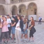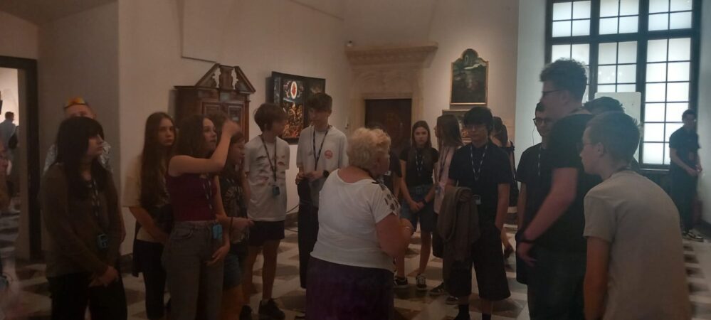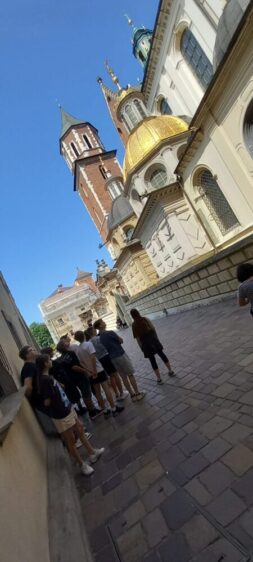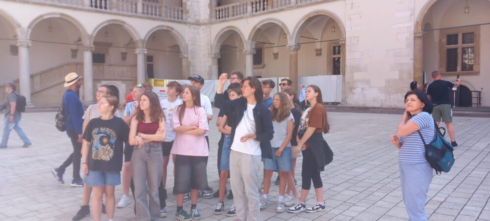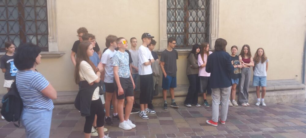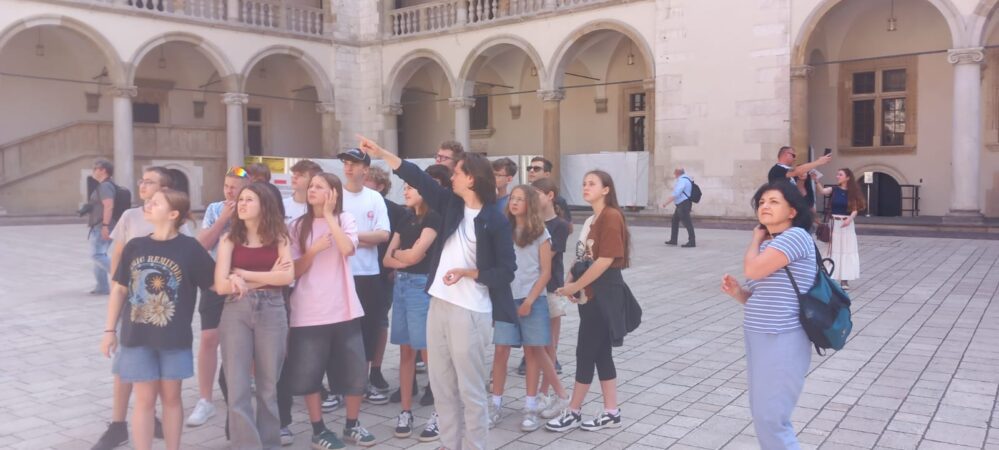 5 czerwca uczniowie klasy 7b wyjechali do Krakowa. Podczas wycieczki na Wawel przeżyli niezwykłą podróż w czasie. Najpierw uczestniczyli w lekcji muzealnej poświęconej renesansowi, podczas której dowiedzieli się o tym, jak ten okres wpłynął na kulturę, sztukę i architekturę Polski. Dowiedzieli się, kim byli najważniejsi artyści epoki renesansu, jakie idee im przyświecały i jak zmieniał się wygląd Wawelu za panowania Zygmunta Starego i królowej Bony. Szczególną uwagę zwrócili na dziedziniec arkadowy, będący jednym z najpiękniejszych przykładów renesansowej architektury w Polsce.