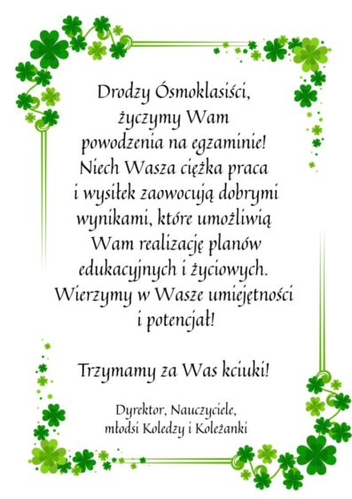 W dniach 13,14,15 maja 2025 r. przeprowadzany jest w szkole egzamin ósmoklasisty.