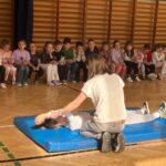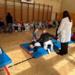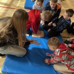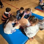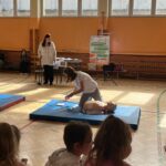 Podczas zajęć dzieci nauczyły się, jakie są kluczowe kroki, które należy podjąć, aby skutecznie pomóc osobie potrzebującej. Nauczyciele w przystępny sposób wyjaśnili, jak prawidłowo wezwać pomoc, a także zaprezentowali technikę resuscytacji krążeniowo-oddechowej oraz układania poszkodowanego w pozycji bocznej. Dzieci miały również możliwość ćwiczenia zdobytych umiejętności w praktyce. Najpierw uczniowie zmierzyli się z pierwszym zadaniem, składaniem telefonów z kartonu, na których ćwiczyli wybieranie numerów alarmowych. Później, w grupach, ćwiczyli układanie poszkodowanego w pozycji bocznej oraz zasady RKO, wykonywane na fantomach. To zajęcie cieszyło się wyjątkową popularnością wśród zebranych uczniów. Na zakończenie szkolenia każdy z uczestniczących otrzymał książeczkę o zasadach udzielania pierwszej pomocy. Będzie ona służyła im na lekcjach z wychowawcą.