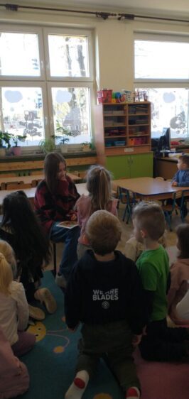 Również najmłodsze dzieci – przedszkolaki mają możliwość wysłuchania ulubionych bajek, czytanych przez uczennice klas szóstych i siódmych w wybranych dniach tygodnia.
