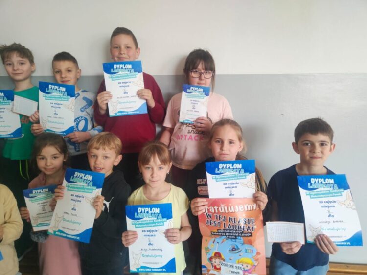 Znamy już wyniki zimowej edycji ogólnopolskiego konkursu przedmiotowego z matematyki ,,Fenek”. W konkursie wzięło udział 26 uczniów z klas 1-3. W krajowym rankingu aż czternastu uczniów z naszej szkoły: Wiktor Mosurek, Martyna Piątek, Szymon Sumera, Jan Rogóż, Igor Kowalski, Pola Dybała, Jakub Nitka, Aleksander Chmist, Aleksandra Wasik, Andrzej Baranek, Karol Tyliba, Oliwier Sioła, Martyna Kordaszewska oraz Alicja Glanowska uzyskali tytuł Laureata. Serdecznie gratulujemy wszystkim uczestnikom i życzymy dalszych sukcesów!