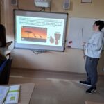 Uczniowie klasy VIII b zaprezentowali w lutym projekt innowacji pedagogicznej z geografii pt. ,,Kultury świata – Afryka”. Kultura Afrykańska jest bogata w sztukę, obejmuje rzeźby w drewnie, malarstwo, tkactwo. Rzeźby afrykańskie są wykonane z wyjątkową precyzją, przedstawiają ważne postacie lub wydarzenia.