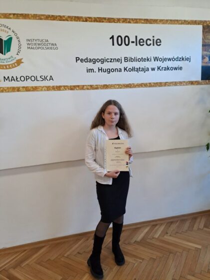 Natalia zajęła w nim pierwsze miejsce i zakwalifikowała się do etapu wojewódzkiego. W tej ostatniej turze rywalizacji, która miała miejsce 19 listopada, wzięło udział 63 uczniów ze szkół podstawowych całego województwa małopolskiego. Natalia godnie reprezentowała naszą szkołę.