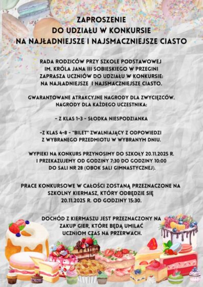 W tym dniu od godziny 15.30 odbędzie się kiermasz organizowany przez Radę Rodziców.