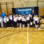Uroczystość rozpoczęła się częścią artystyczną, podczas której uczniowie klasy 1a i 1b zaprezentowali wiersze i piosenki, pokazując swoje umiejętności oraz gotowość do rozpoczęcia szkolnej przygody. Następnie nastąpił najważniejszy moment — pasowanie na ucznia, którego symbolicznym aktem było dotknięcie ramienia wielkim ołówkiem przez Panią Dyrektor.
